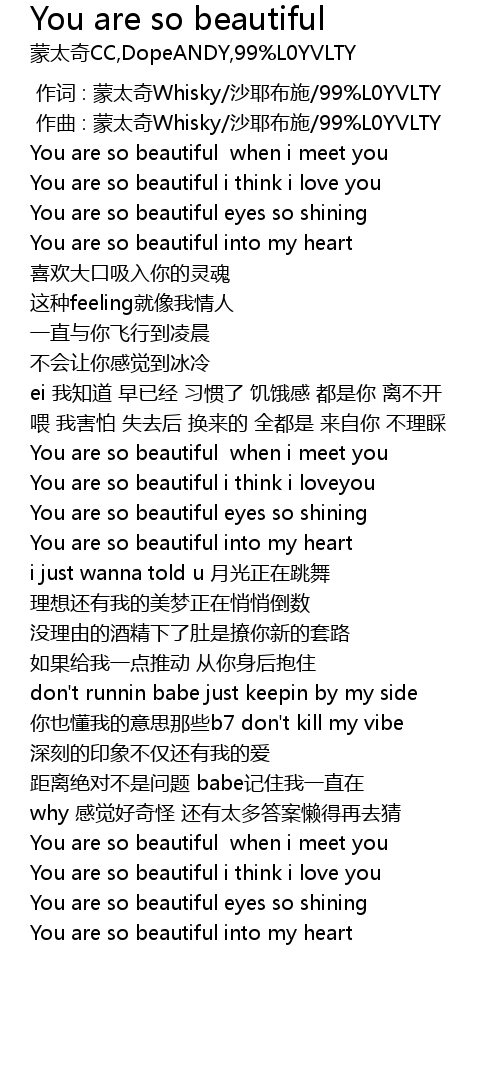 | [01:07.394] | You are so beautiful i think i loveyou |