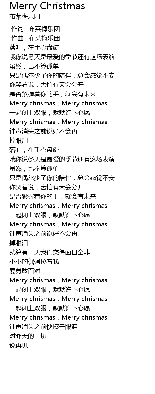 | [02:15.854] | Merry chrismas,Merry chrismas |