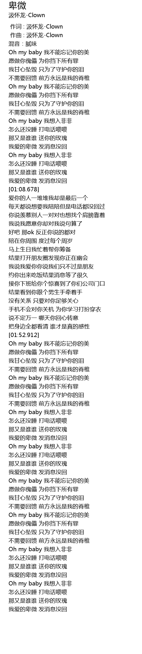 | [01:06.177] | 我爱的卑微 发消息没回 |