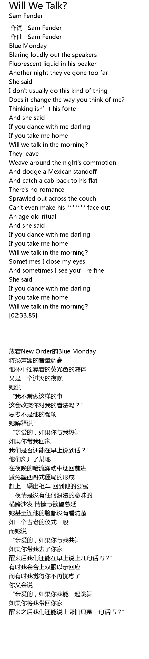 | [02:27.44] | Will we talk in the morning? |