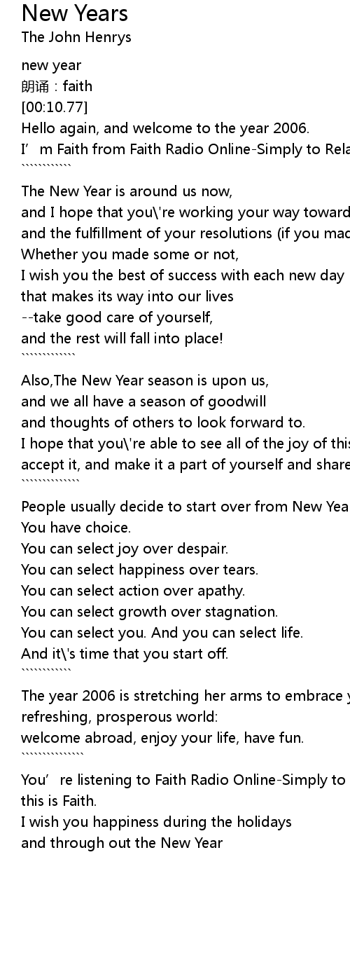 | [00:54.58] | and the fulfillment of your resolutions (if you made any). |