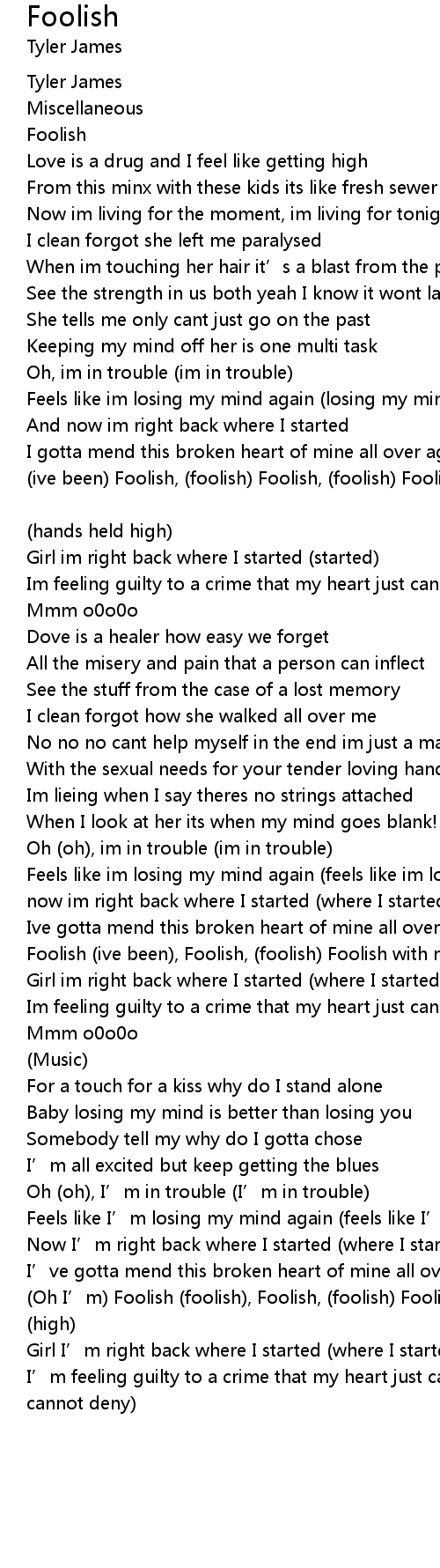 | Oh I' m Foolish foolish, Foolish, foolish Foolish with my hands held high high | |