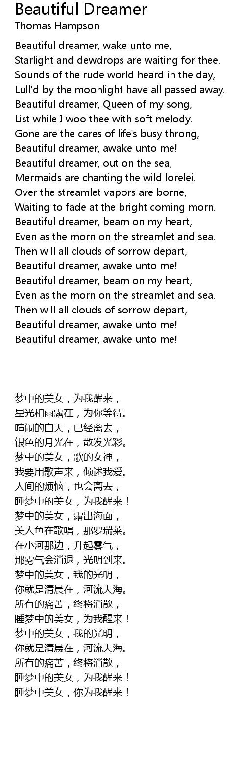 Beautiful dreamer, wake unto me, |