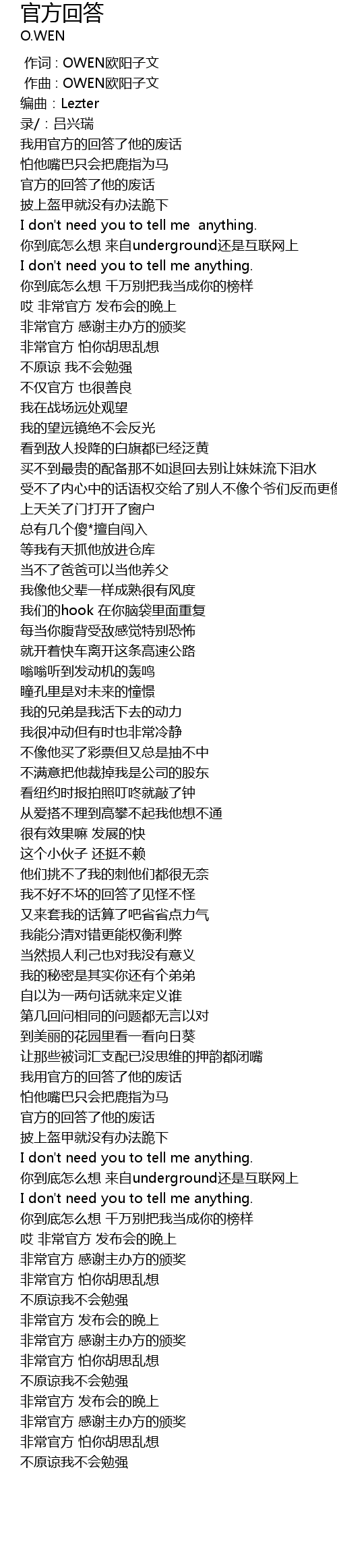 | [00:04.453] | 我用官方的回答了他的废话 |