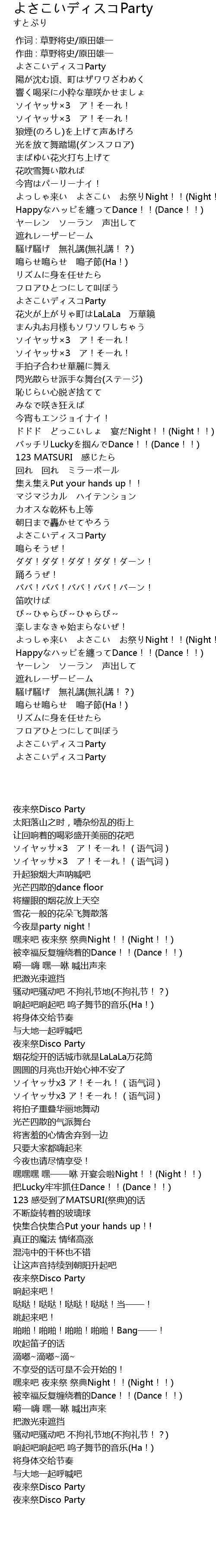 | [02:58.24] | よっしゃ来い よさこい お祭りNight!!(Night!!) |
