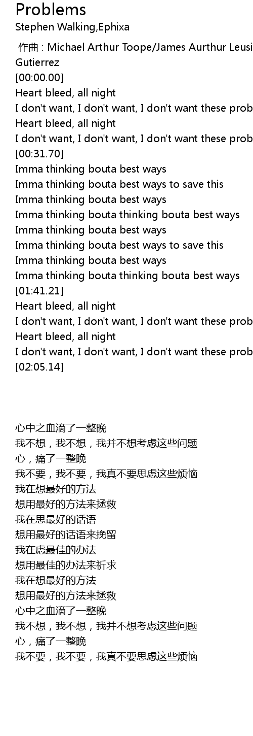 | [02:01.75] | I don't want, I don't want, I don't want these problems |