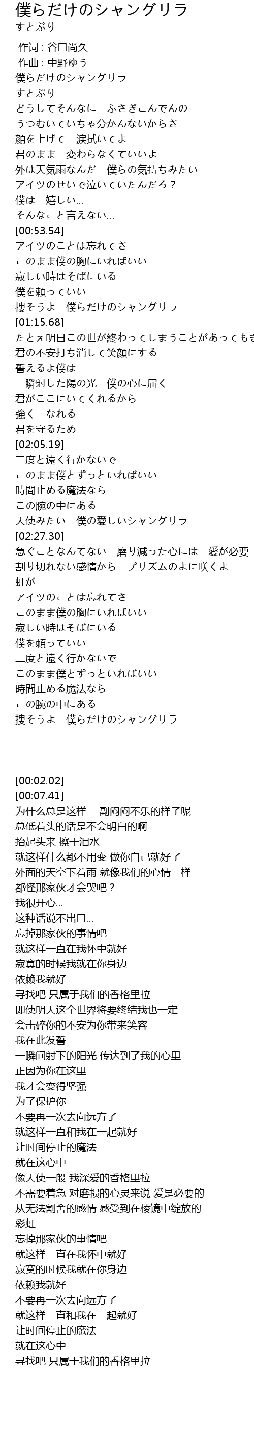 | [02:20.82] | 天使みたい 僕の愛しいシャングリラ |