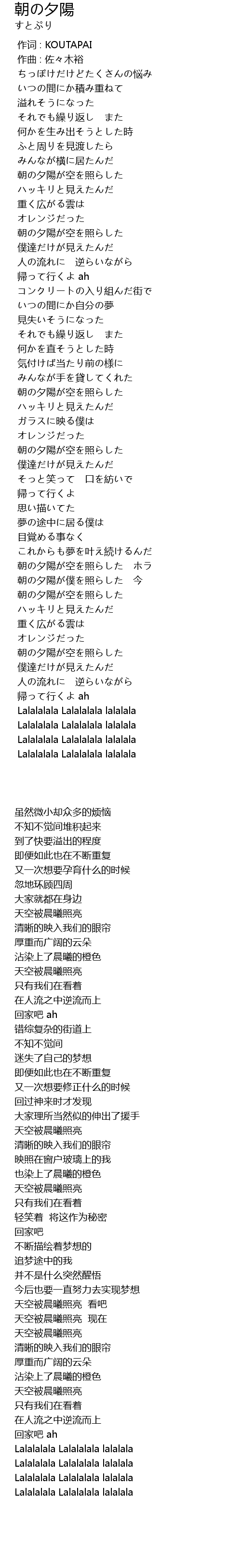 | [00:53.33] | 朝の夕陽が空を照らした |