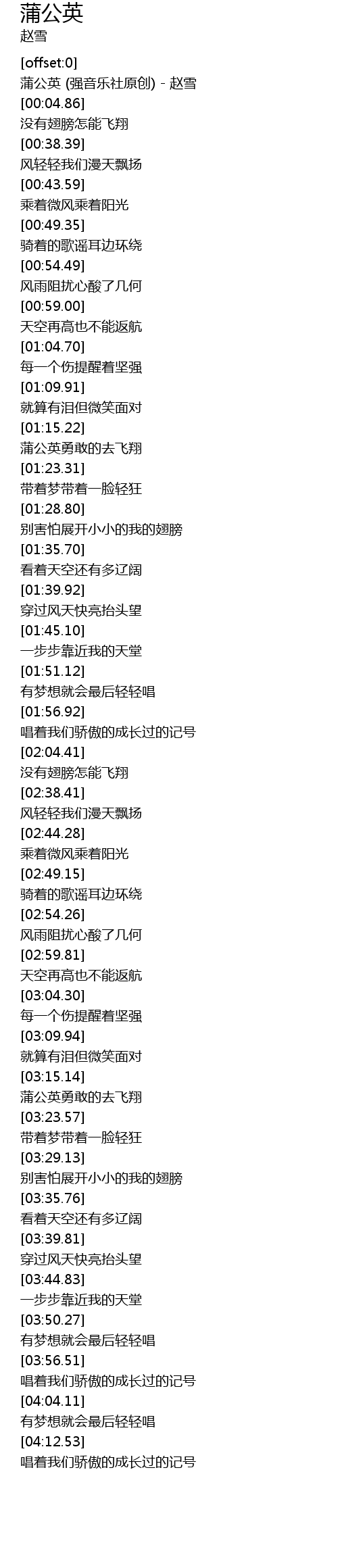 | [00:00.28] | 蒲公英 (强音乐社原创) - 赵雪 |