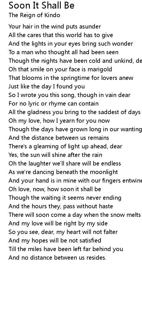 Oh love, now, how soon it shall be |