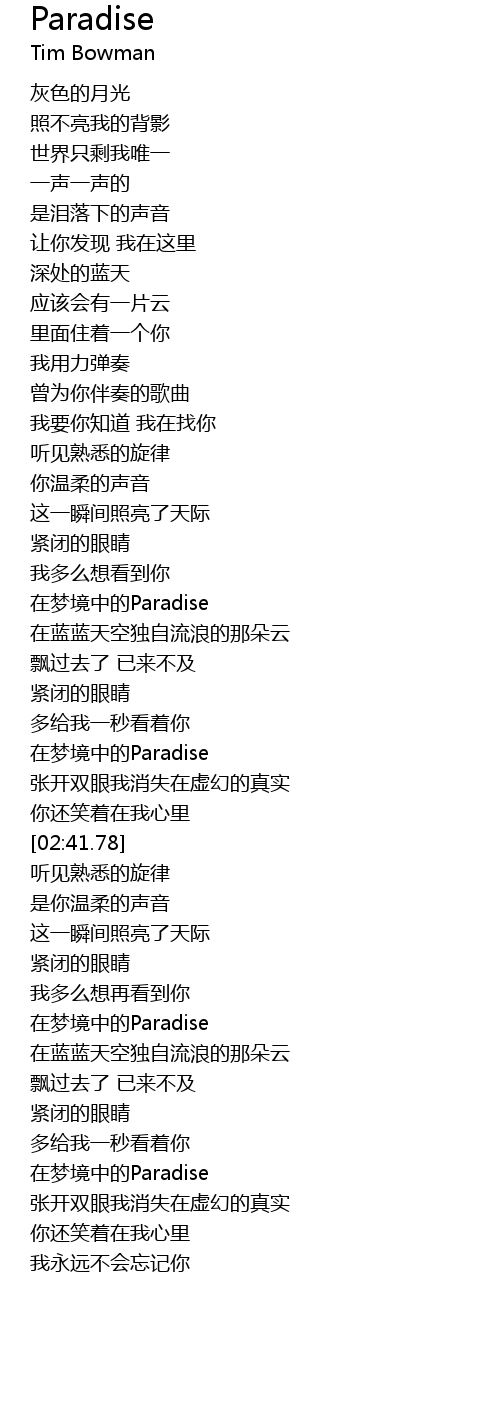 | [03:17.19] | 在梦境中的Paradise |