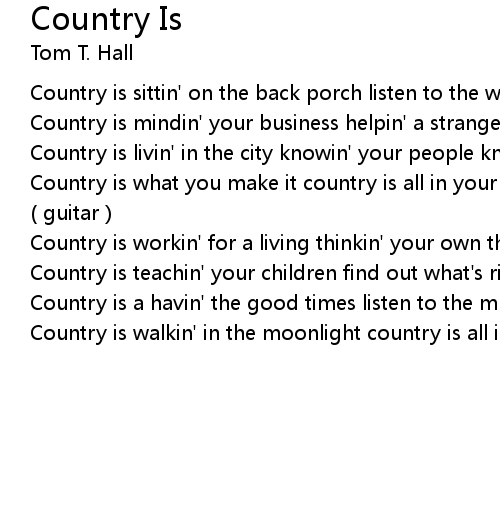 Country is workin' for a living thinkin' your own thoughts lovin' your town |