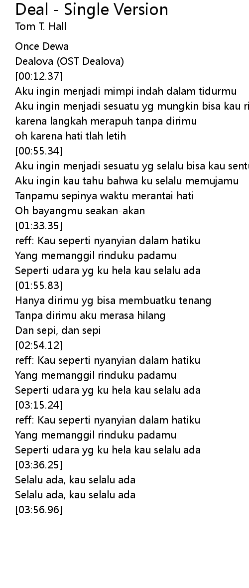 [03:25.68] Seperti udara yg ku hela kau selalu ada
