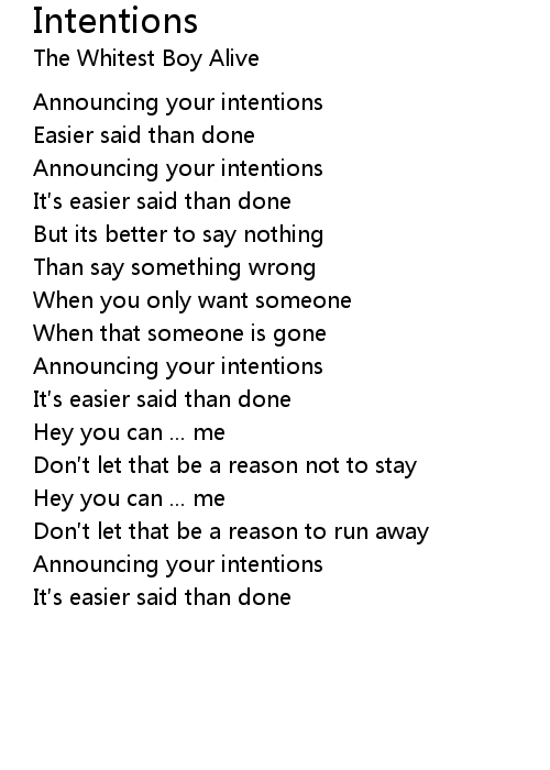 | Song | Intentions |