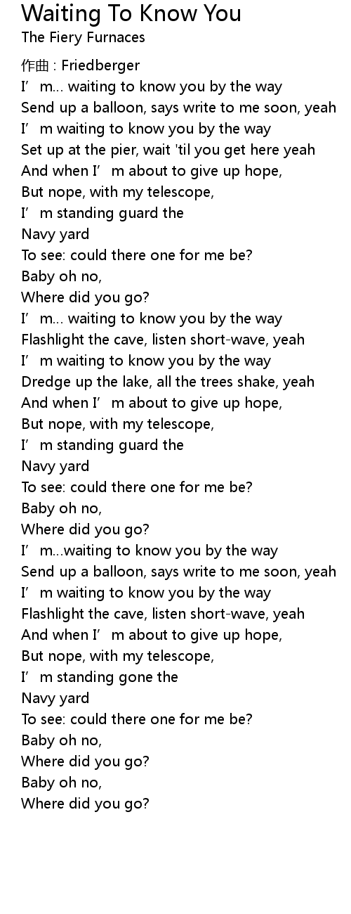 | I' m waiting to know you by the way | |