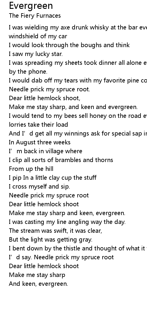 | Make me stay sharp and keen, evergreen. | |