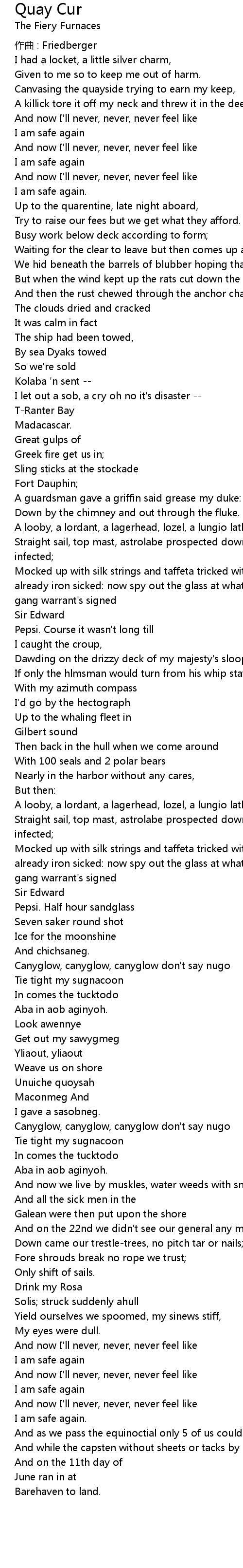 | And then the rust chewed through the anchor chain and out to sea we' re cast. | |