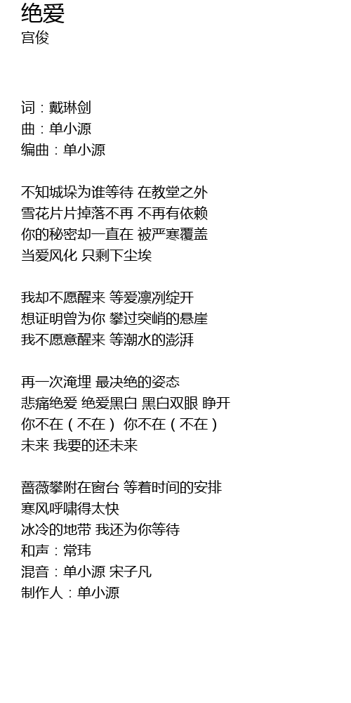 | 悲痛绝爱 绝爱黑白 黑白双眼 睁开 | |