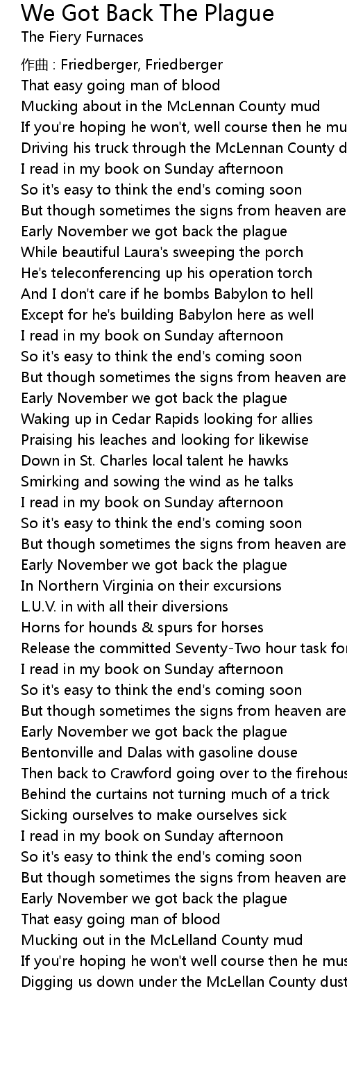 | Song | We Got Back The Plague |