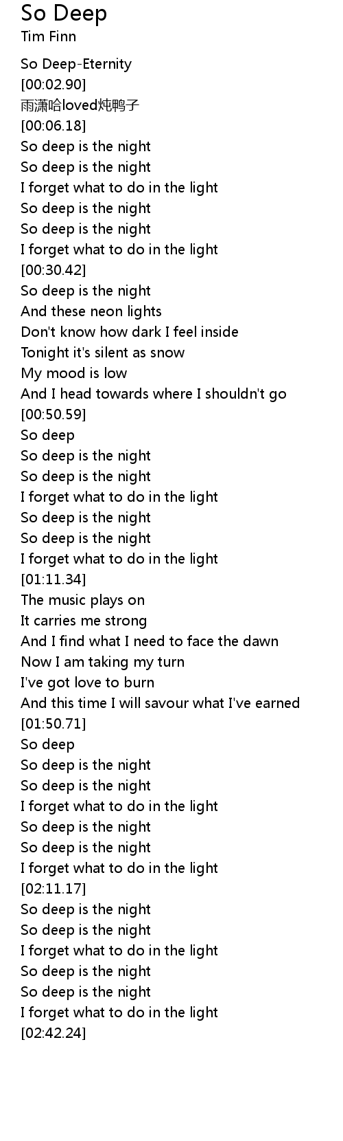 | [02:01.99] | So deep is the night |