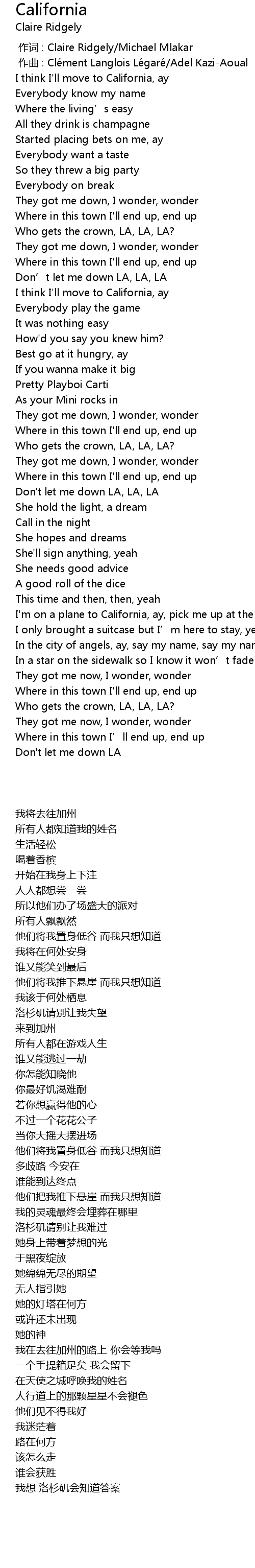 | Song | California |