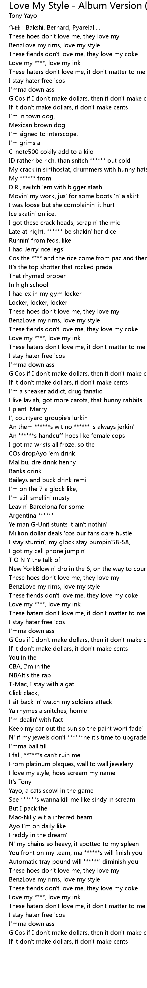 | Song | Love My Style - Album Version (Explicit) |