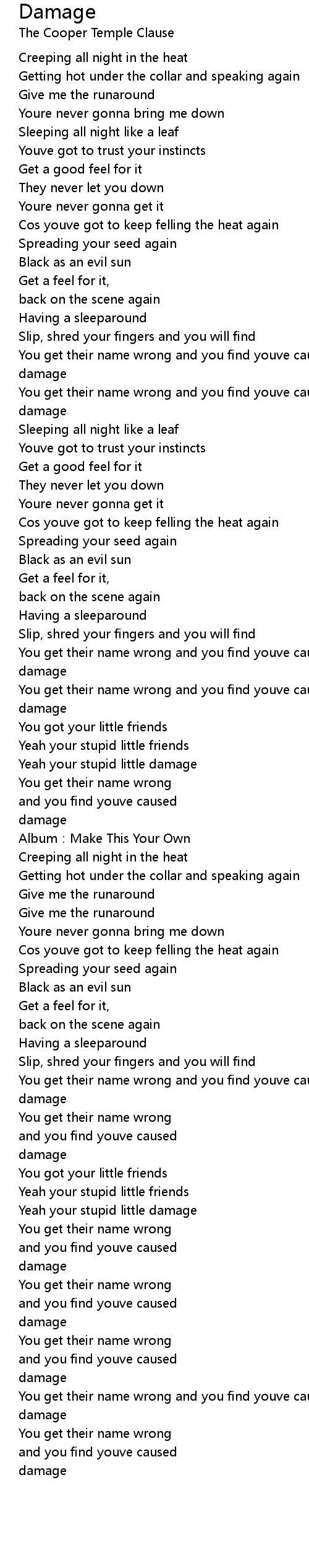 | Song | Damage |