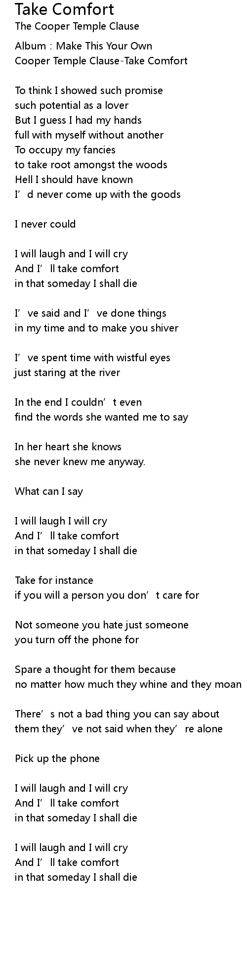 | Cooper Temple ClauseTake Comfort | |