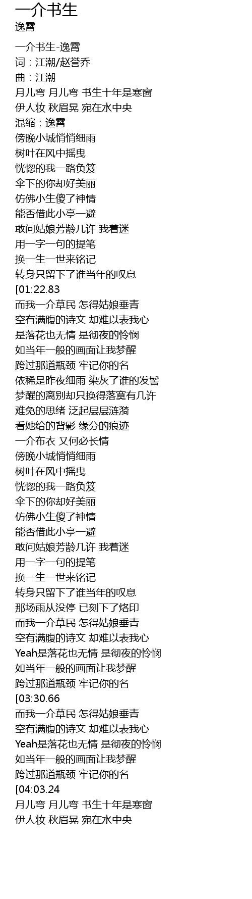 | [00:00.00] | yī jiè shū shēng yì xiāo |