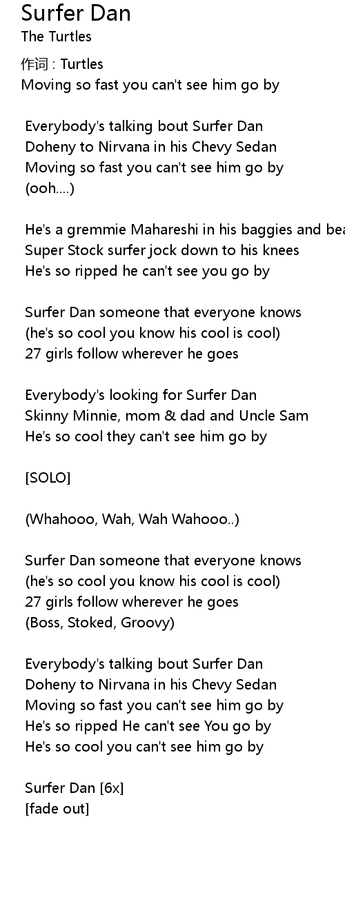 | 作词 : Turtles | |
