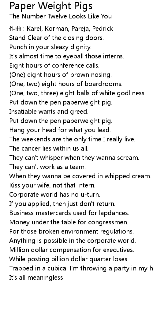 | Song | Paper Weight Pigs |