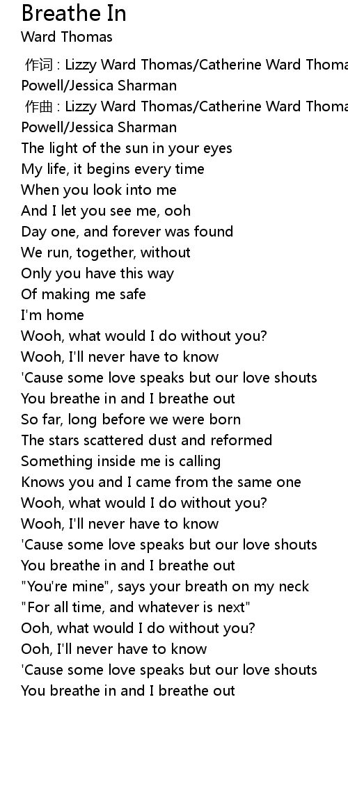 | [01:22.20] | You breathe in and I breathe out |