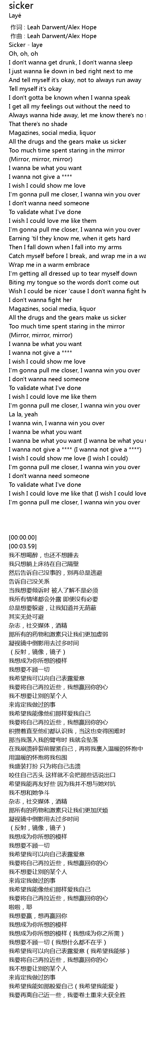 | [00:00.00] | Sicker - laye |