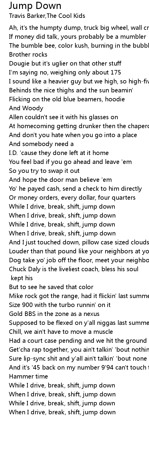 When I drive, break, shift, jump down |