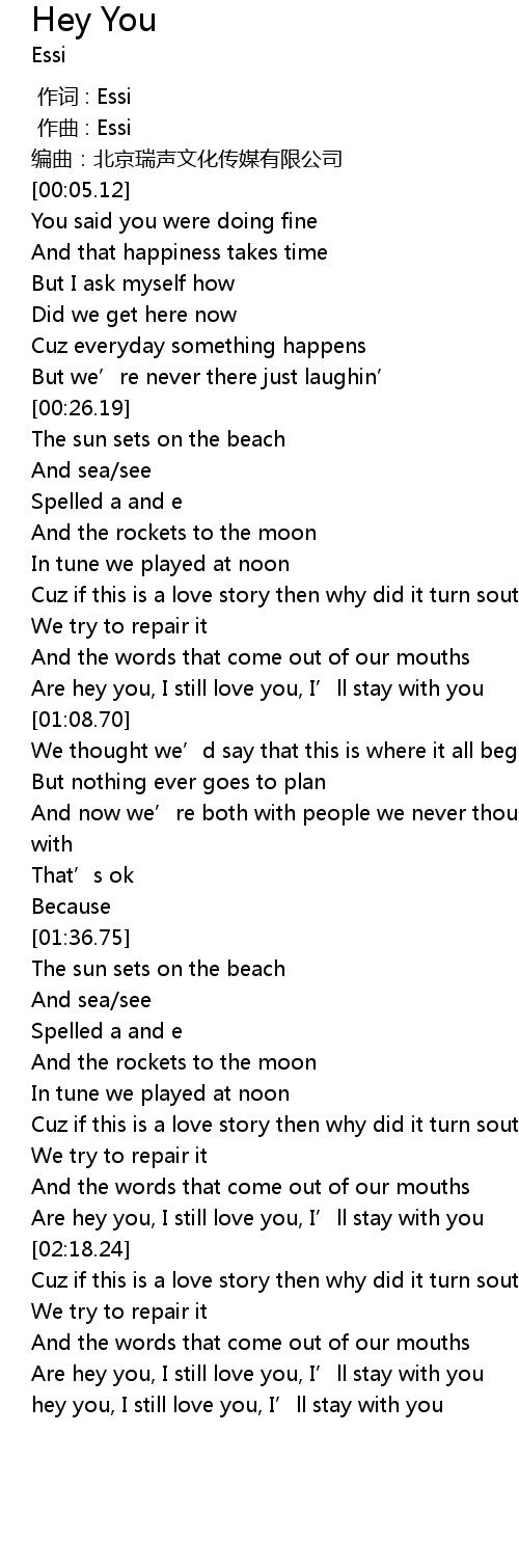| [02:07.71] | Are hey you, I still love you, I' ll stay with you |