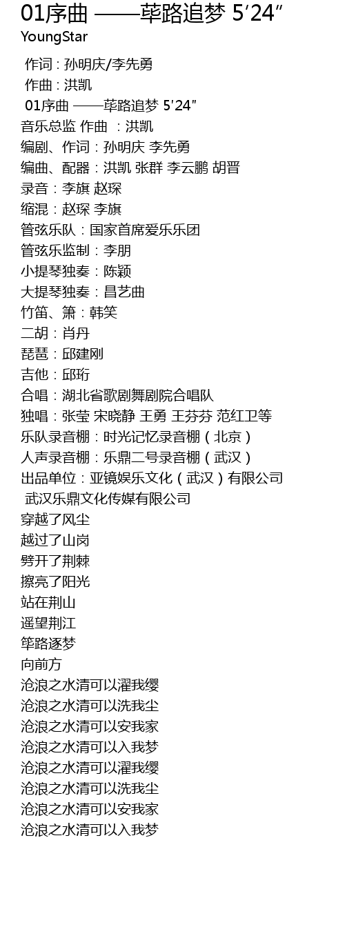 | Song | 01序曲 ——荜路追梦 5′24″ |