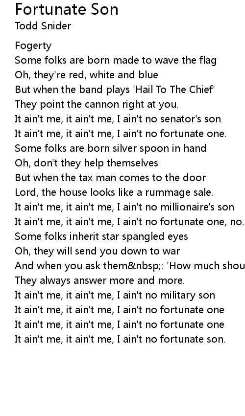 It ain't me, it ain't me, I ain't no fortunate son. |