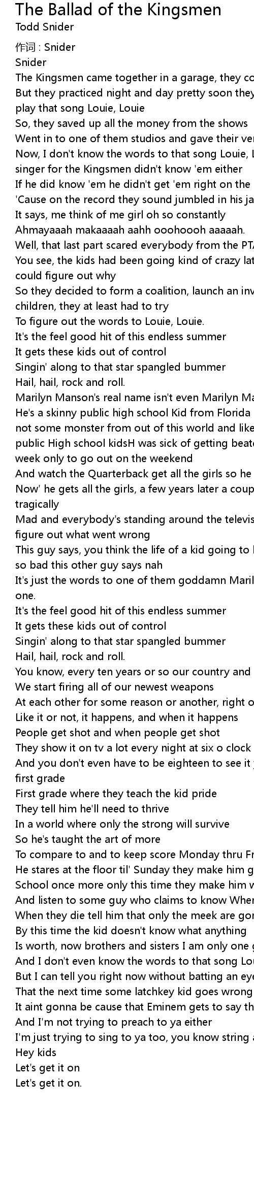 | Song | The Ballad of the Kingsmen |