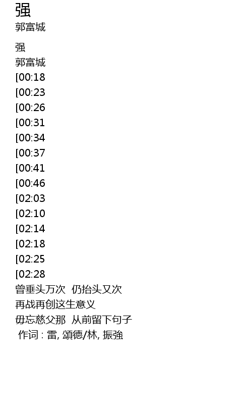 | [00:00.00] | zuò cí : léi, sòng dé lín, zhèn qiáng |