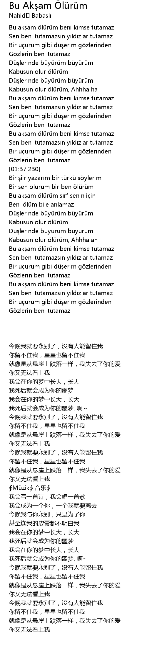 | [02:55.430] | Bu akşam ölürüm beni kimse tutamaz |
