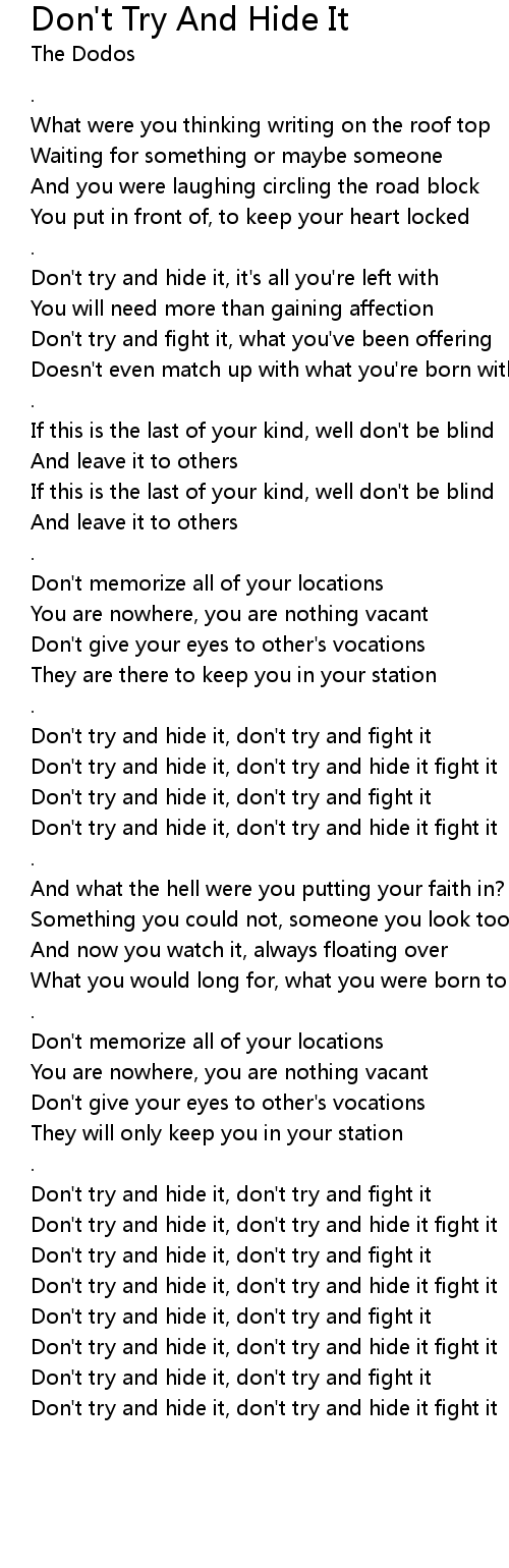 | [01:43.42] | Don't try and hide it, don't try and hide it fight it |
