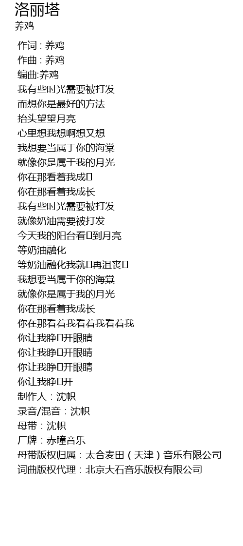 | [03:11.515] | 词曲版权代理:北京大石音乐版权有限公司 |