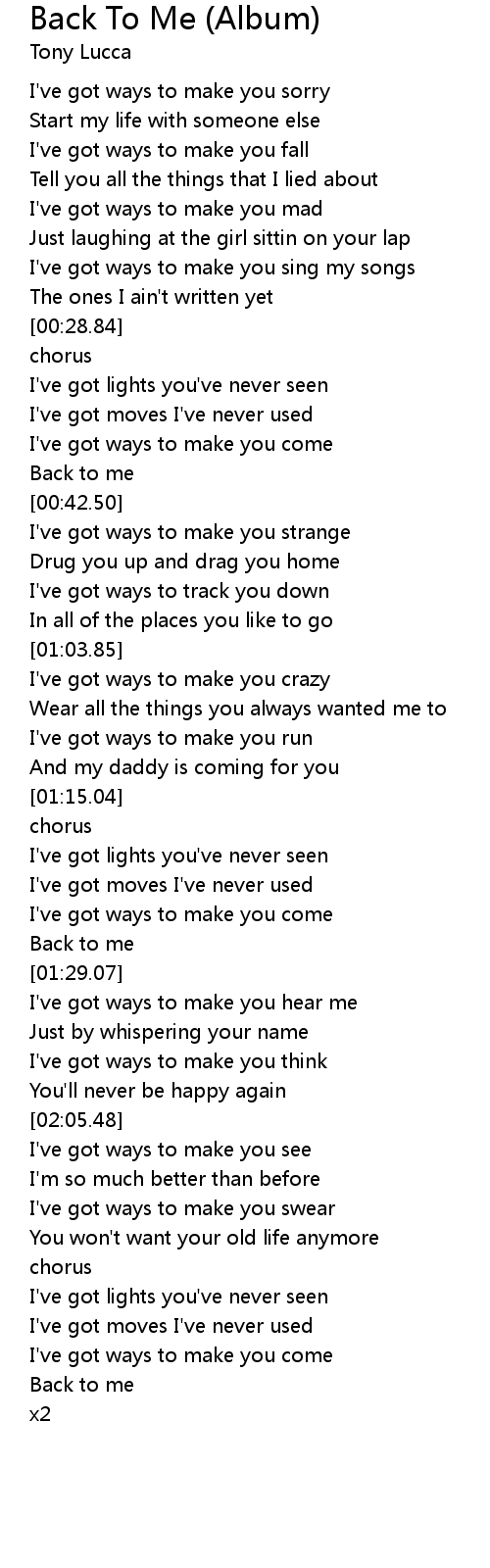Back To Me (Album) Lyrics