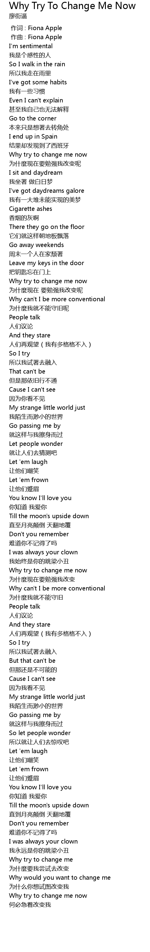 | [04:25.493] | wèi shí me yào wǒ cháng shì qù gǎi biàn |