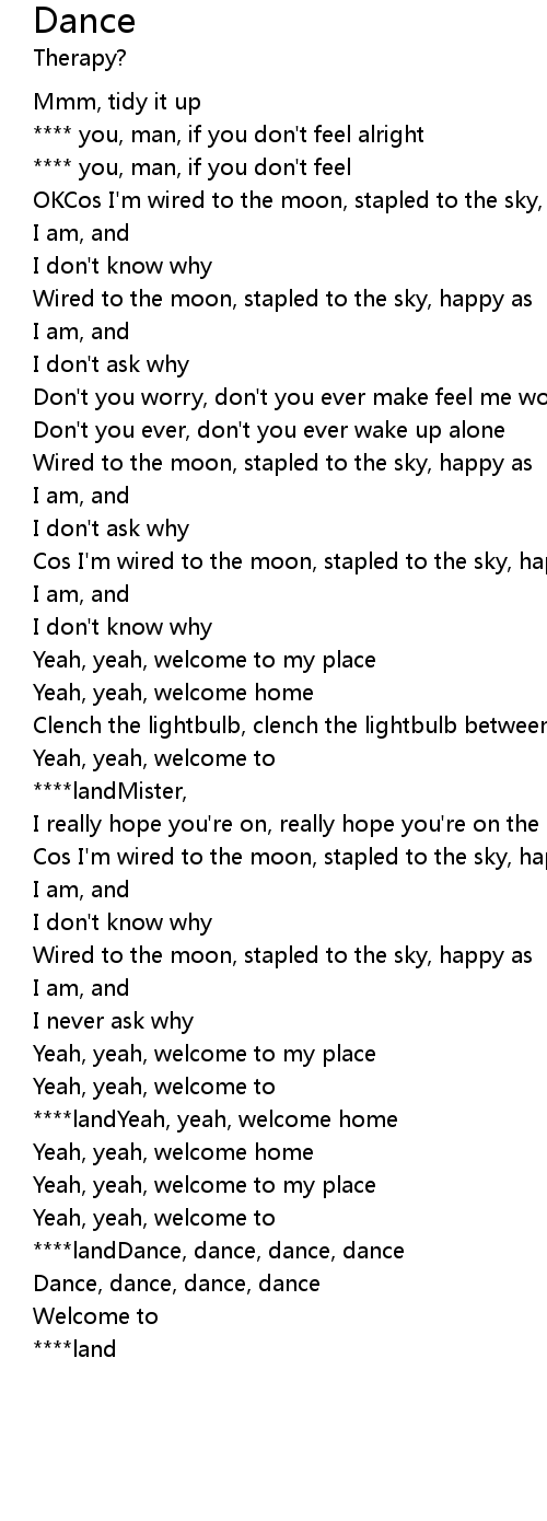 | Wired to the moon, stapled to the sky, happy as | |