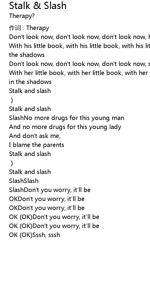 | Don' t look now, don' t look now, don' t look now, she' s hiding in the shadows | |