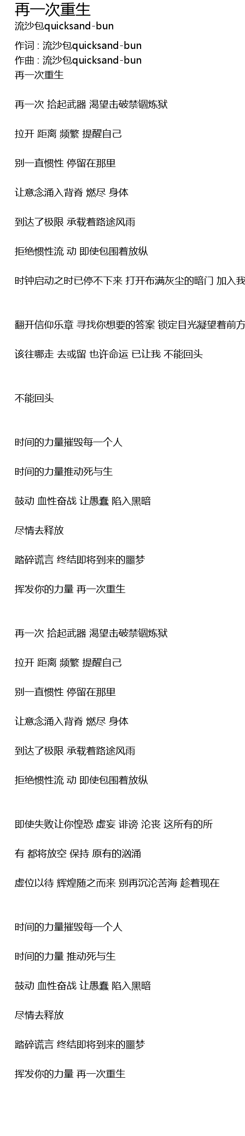 | 挥发你的力量 再一次重生 |