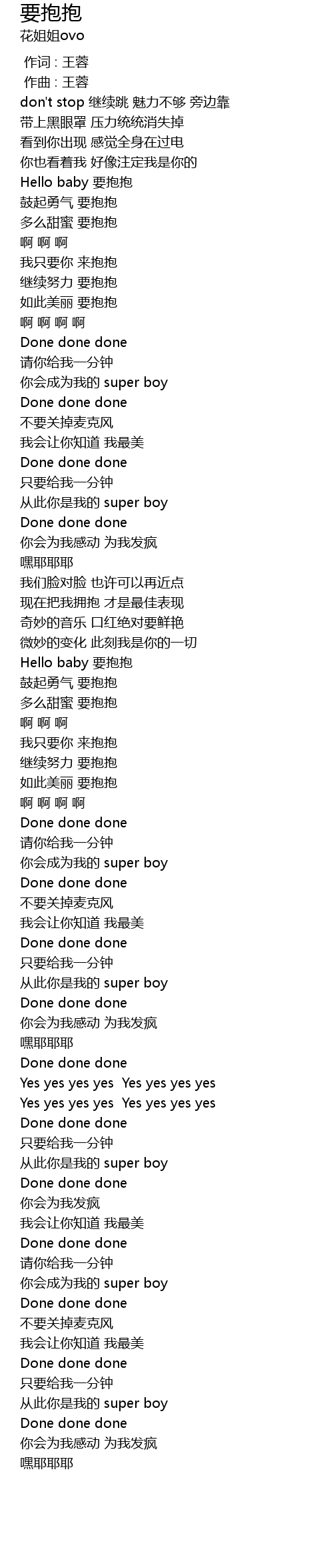 | [00:44.23] | wǒ zhǐ yào nǐ lái bào bào |