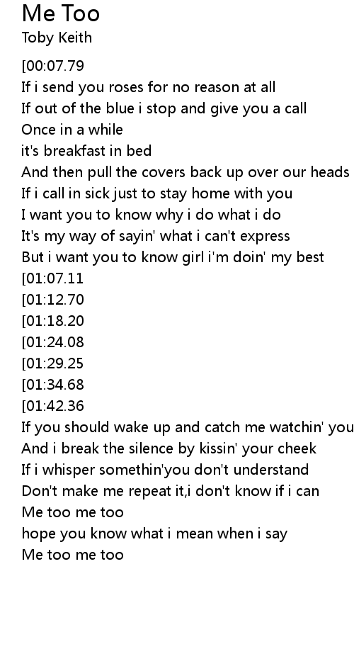 | [03:08.95] | Me too me too |