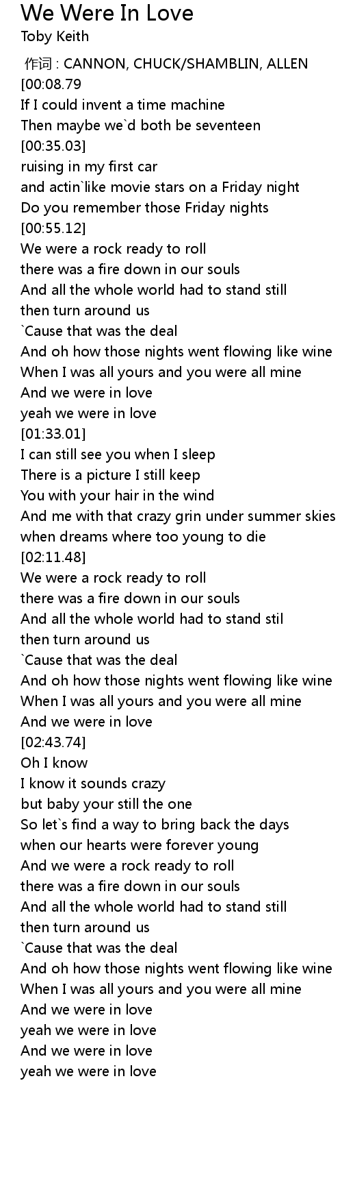 | [00:00.00] | 作词 : CANNON, CHUCK/SHAMBLIN, ALLEN |